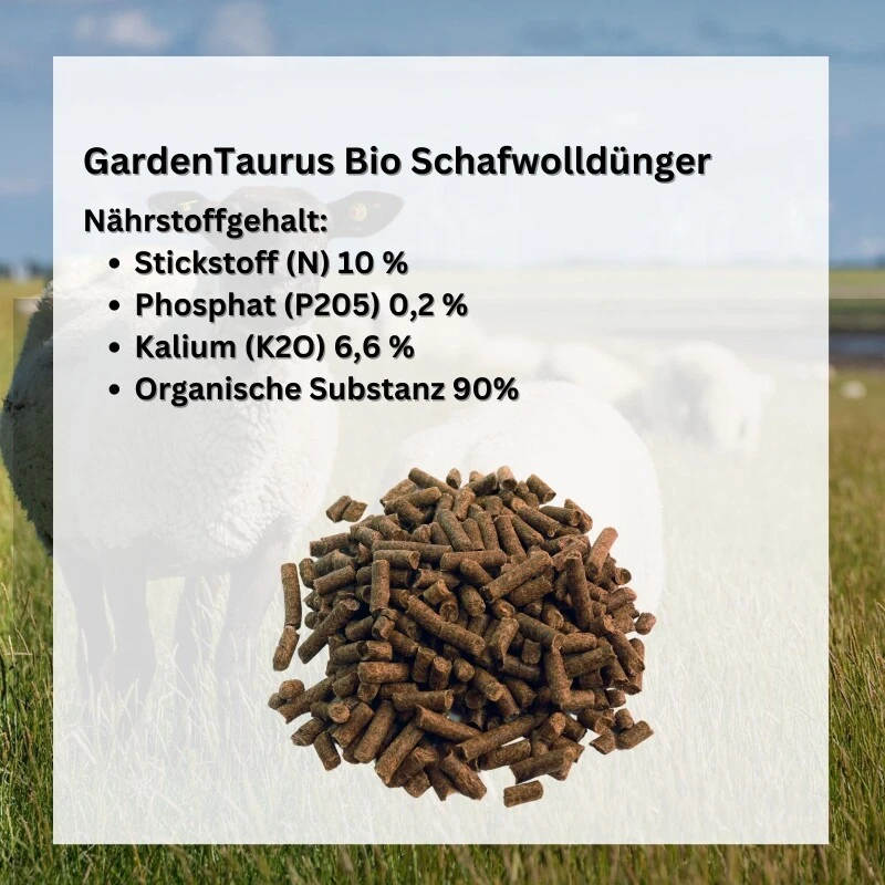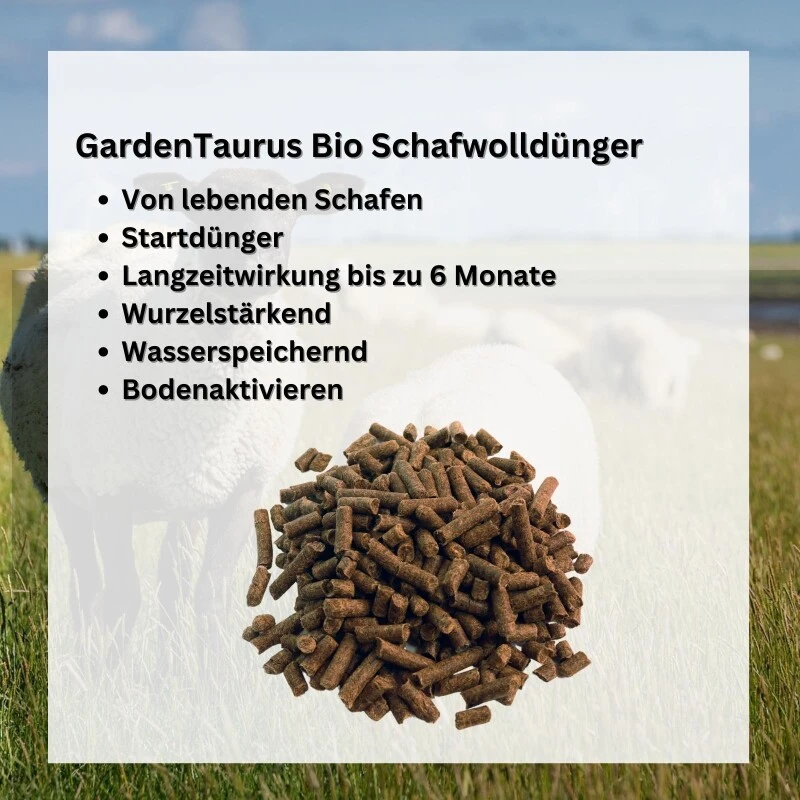Naturdünger mit einem Stickstoffgehalt von mindestens 10%. Perfekter Langzeitdünger, der durch das Aufquellen den Boden lockert und das Wurzelwachstum fördert. Unsere Schafwolldünger-Pellets sorgen für eine höhere Wasserspeicherfähigkeit des Bodens und für ein gesundes Wachstum der Pflanzen.