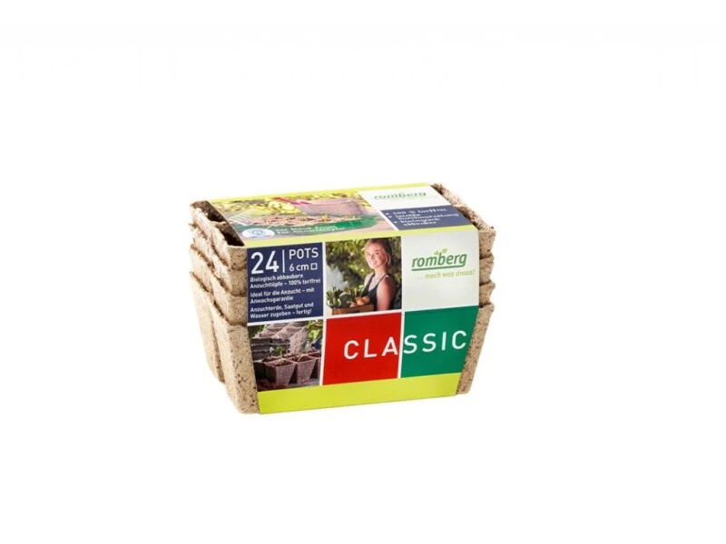 24 Anzuchttöpfe, 4 Strips à 6 Töpfe, 6 cm quadratisch