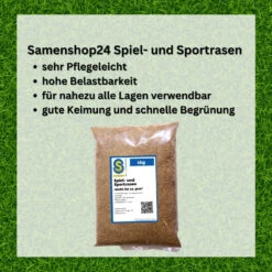 Der Samenshop24-Spiel- und Sportrasen enthält schnellkeimende, hochbelastbare, feinblättrige Spitzensorten. Auch bei Früh- und Spätaussaat bildet sich innerhalb kürzester Zeit ein dichter und strapazierfähiger Rasen. Ideal auch für die Rasenerneuerung ohne Umgraben und zur Nachsaat alter und lückenhafter Rasenflächen.