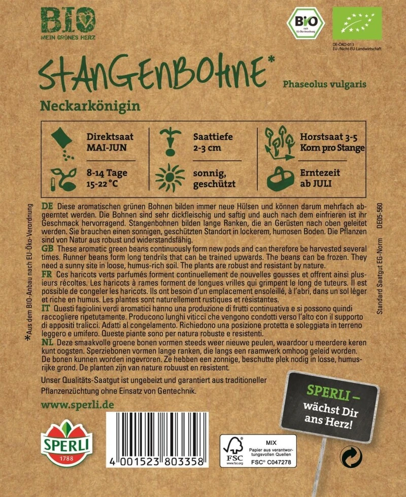 Sperli Gemüsesamen Bohnensamen Stangenbohnen